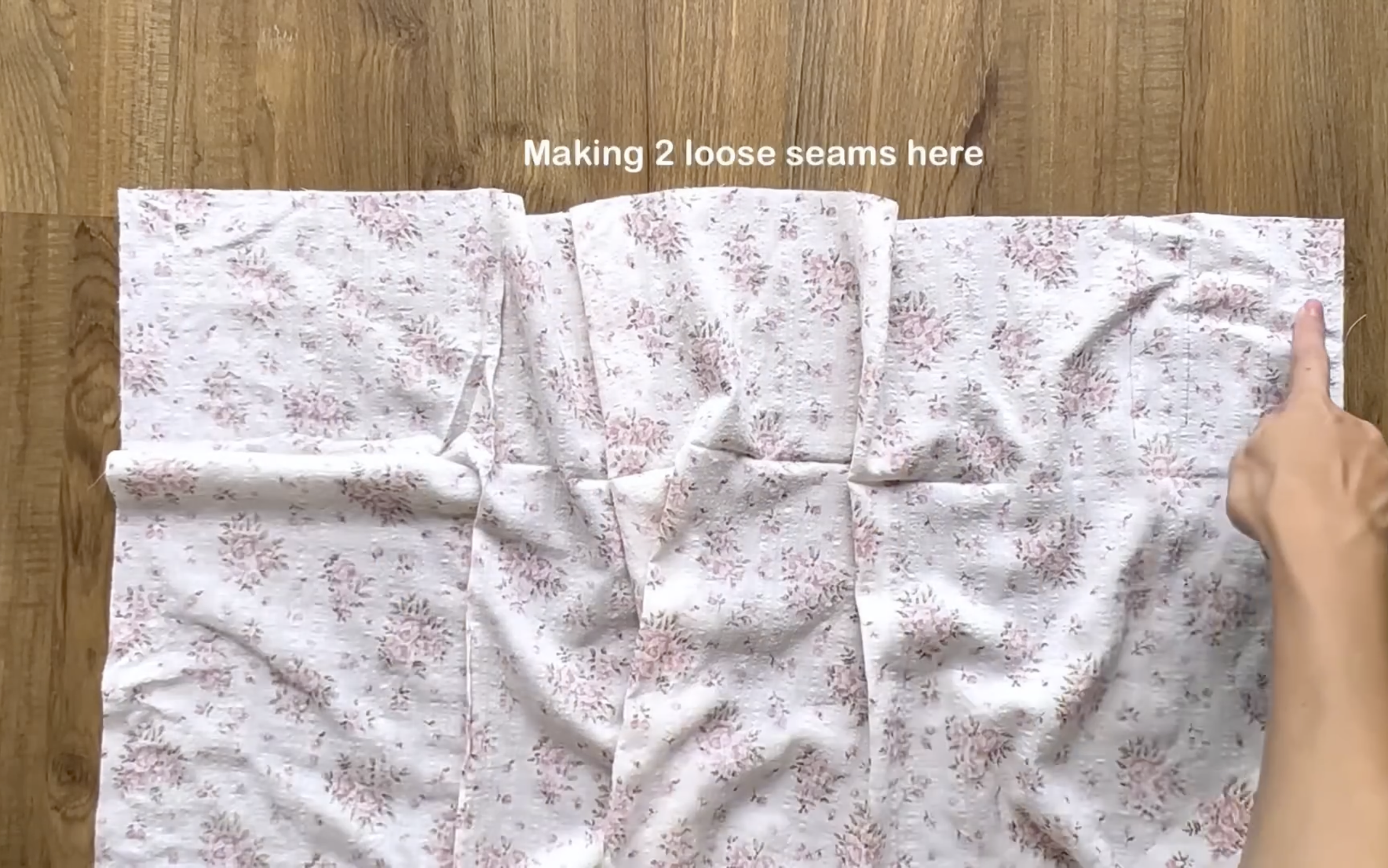 At the top of the front bodice, make two loose seams, then gather the fabric.