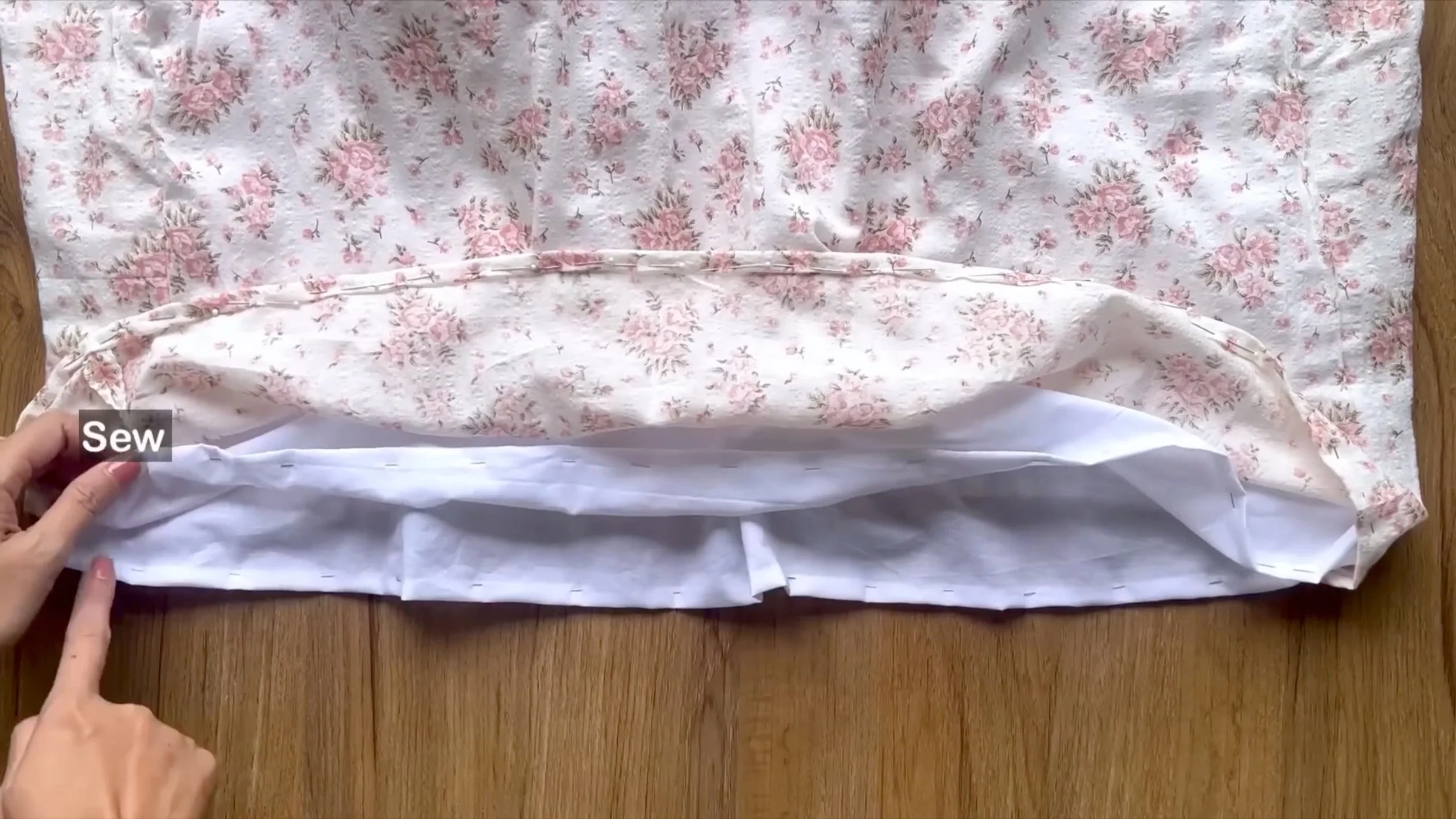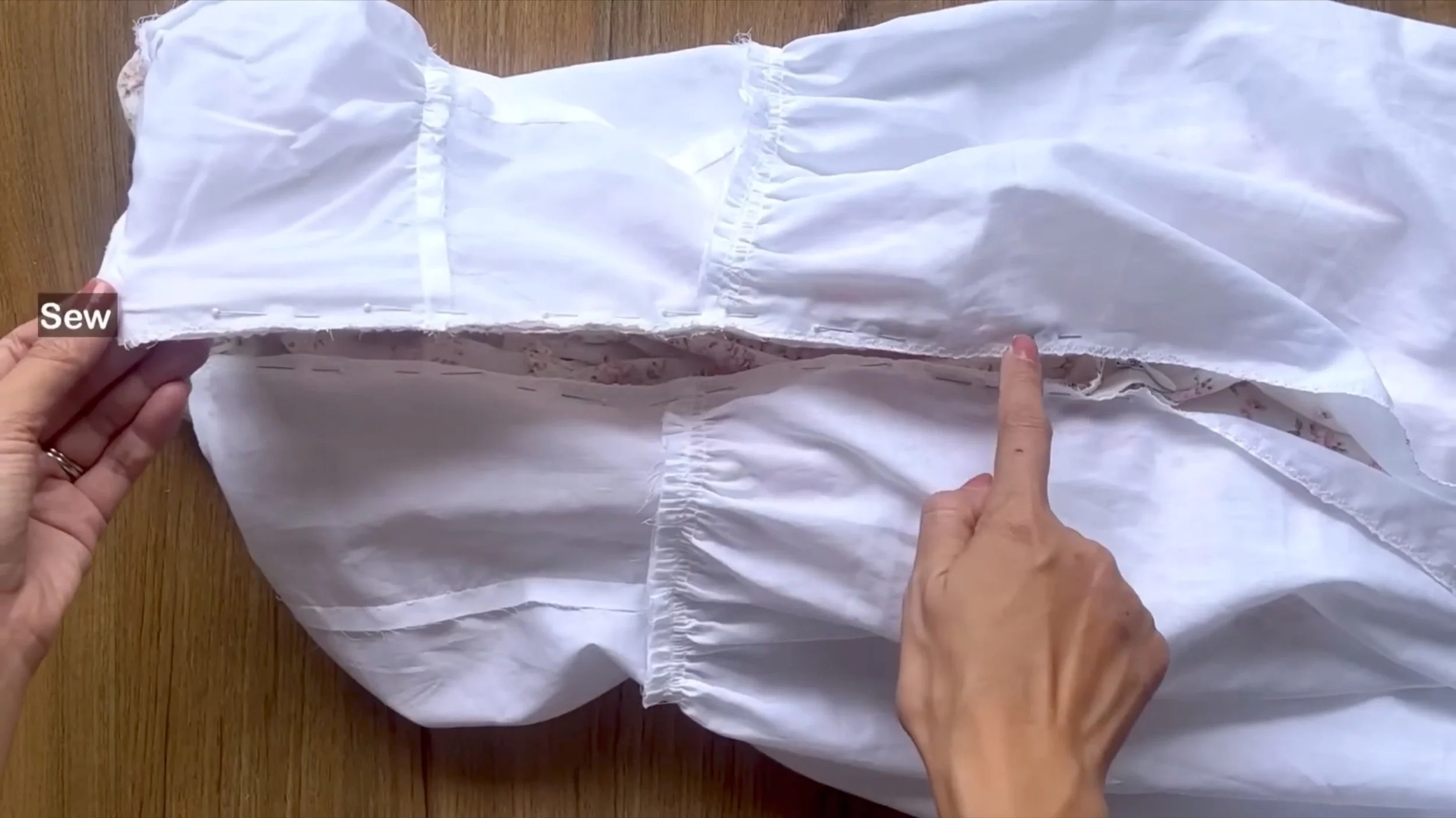 At the top of the back skirt, make two loose seams, then gather the fabric.