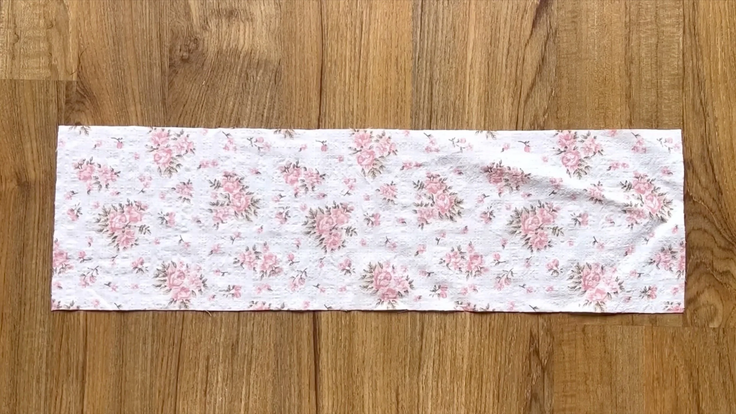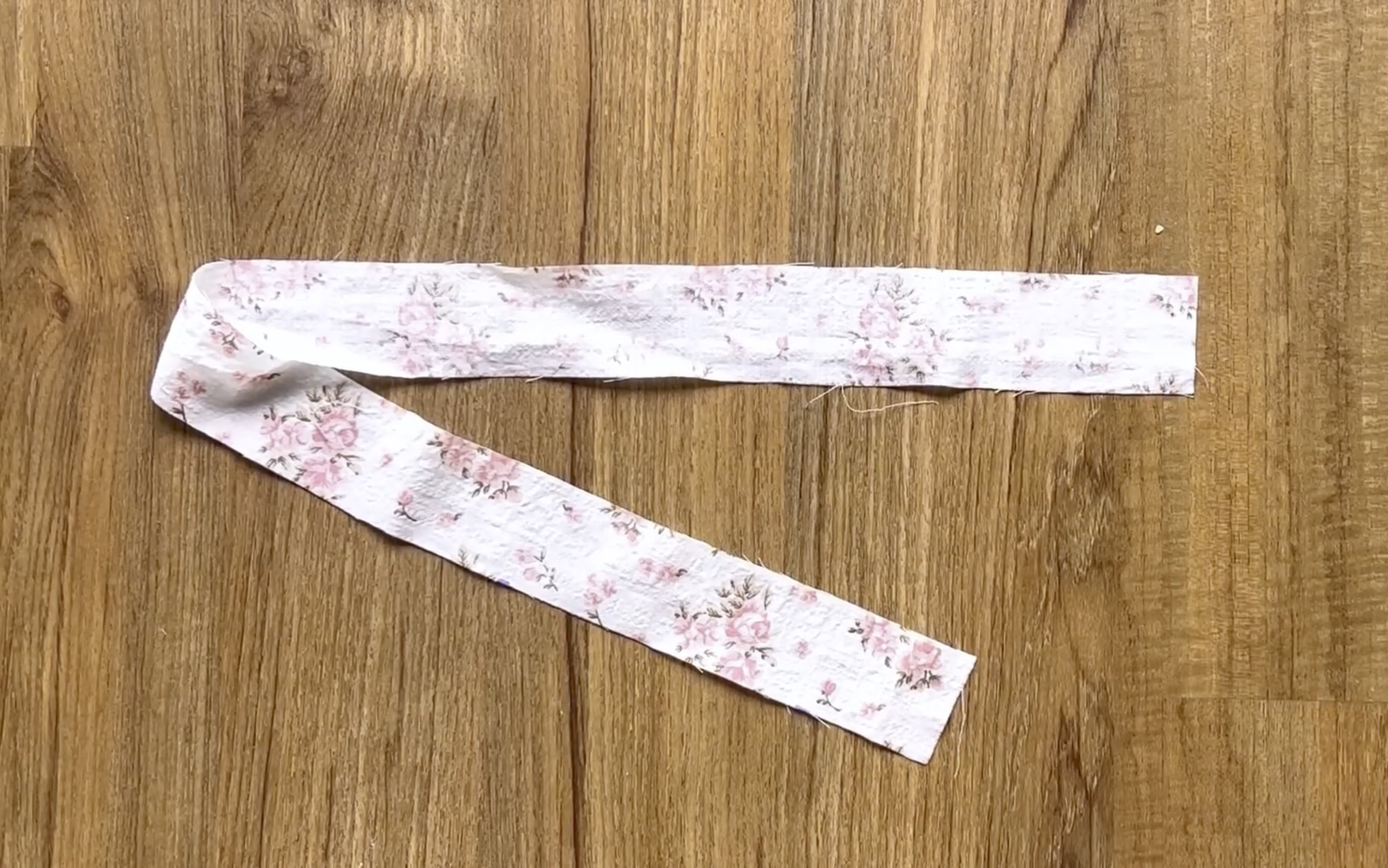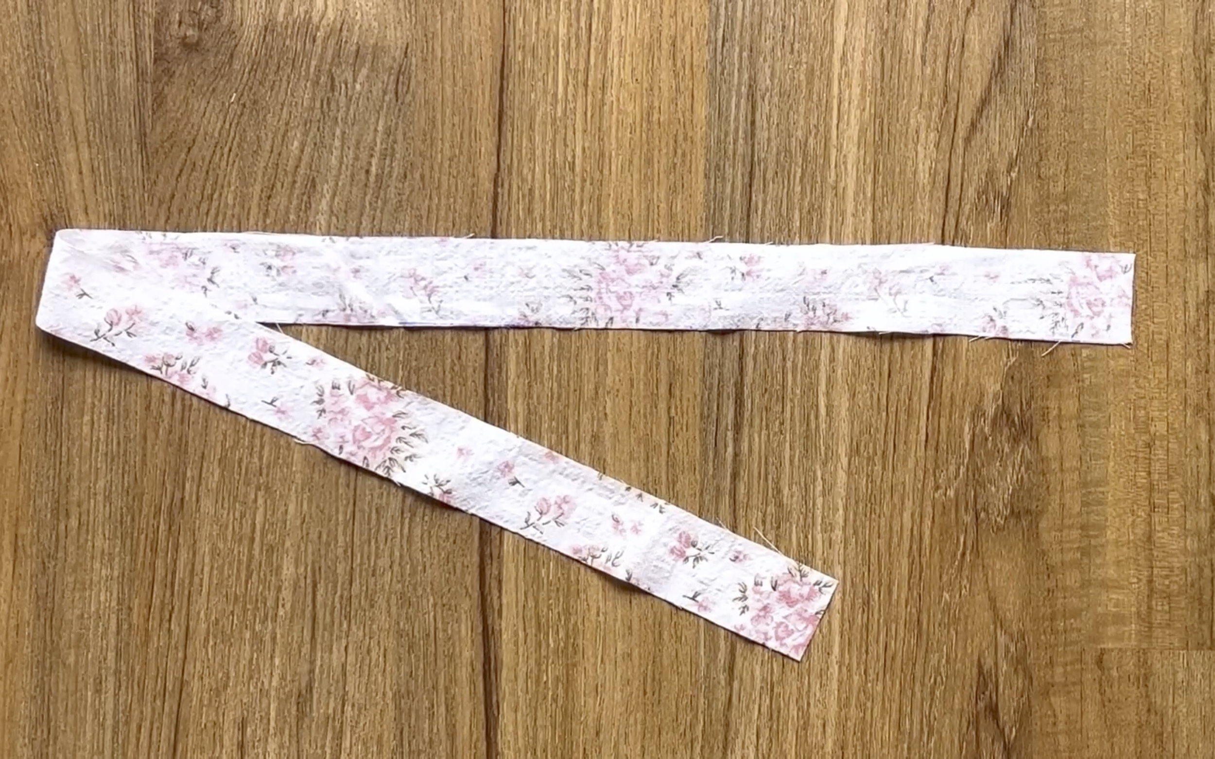 For the front tie, cut a rectangle 4 cm wide (double the tie width, plus 2 cm seam allowance) and around 40 cm long. Connect the lane lines, turn it right side out, and iron.
