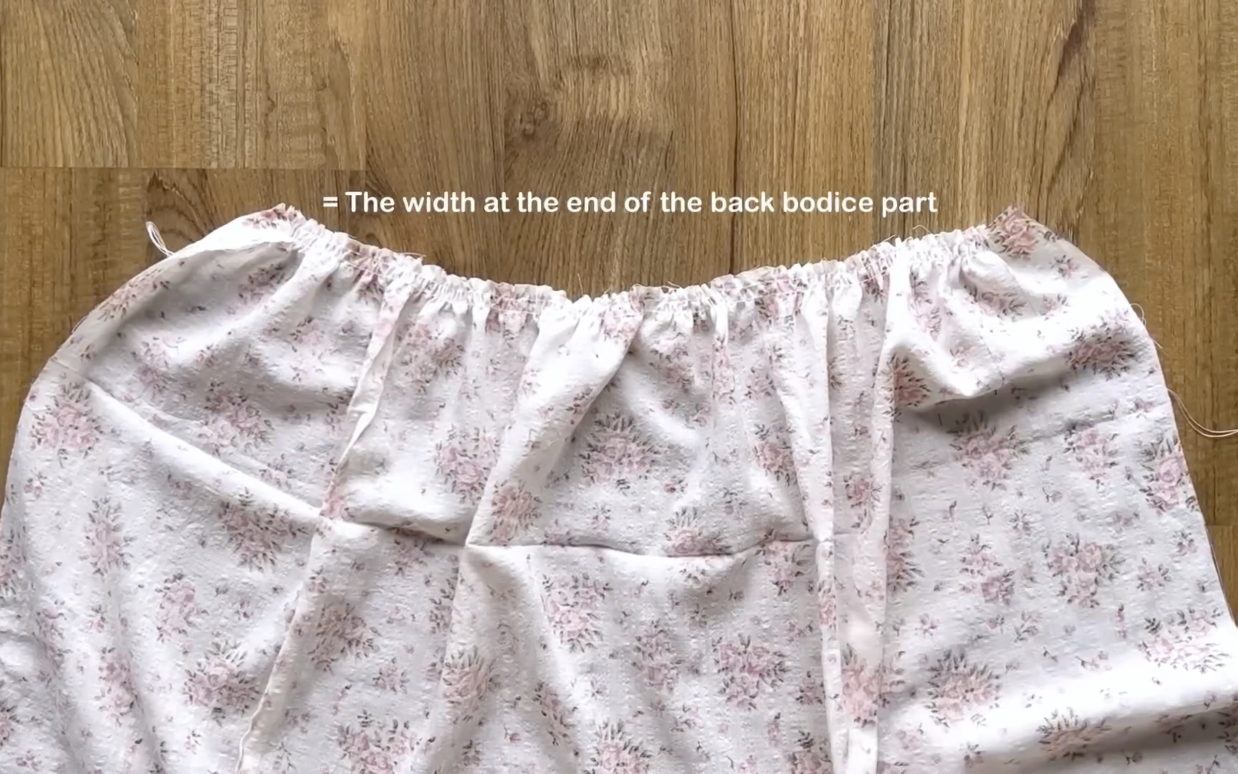 The final width of the gathering fabric will be the same at the end of the back bodice.