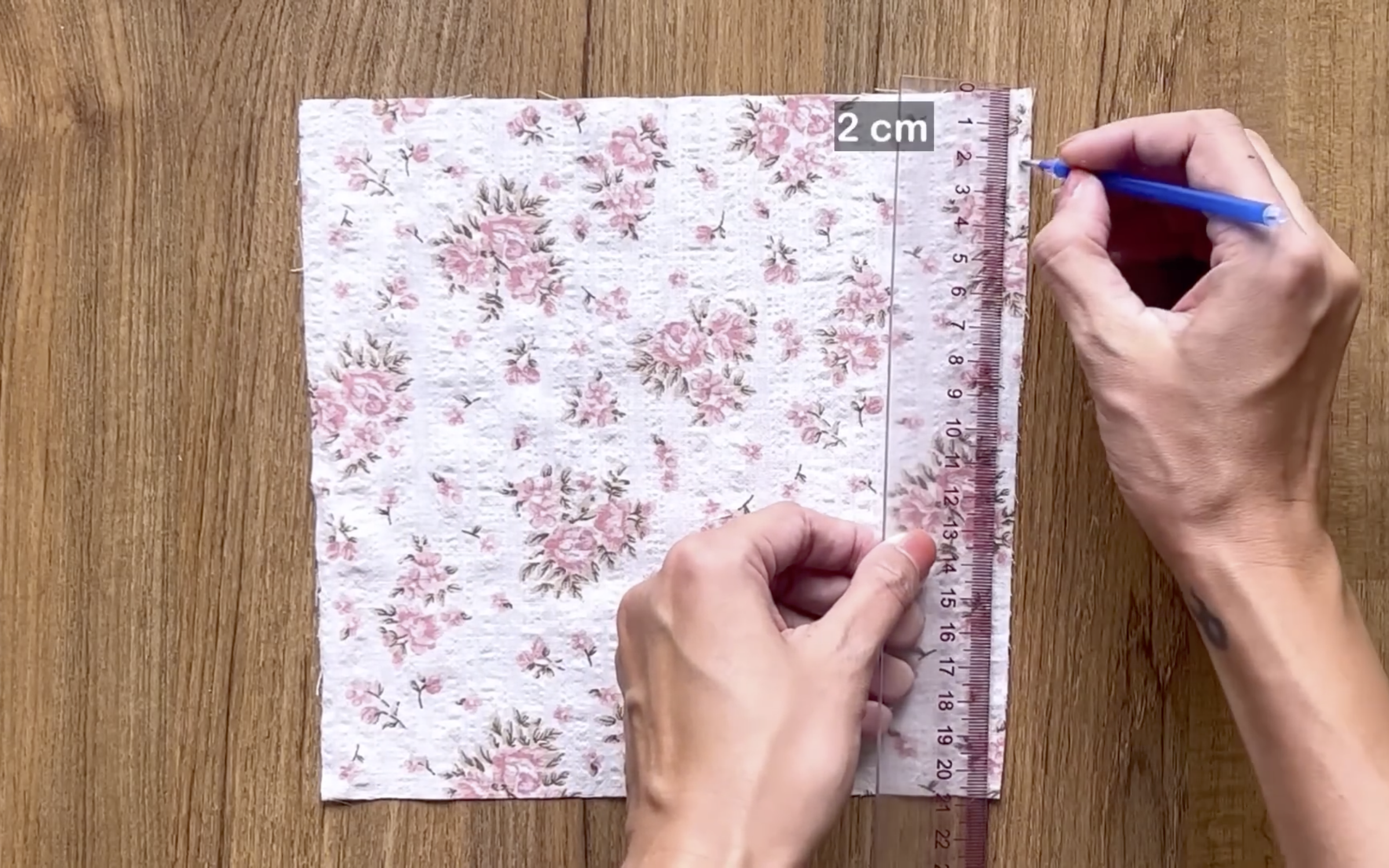 At the other end of the top width line, mark 5 cm down on the lane line to indicate the under-armpit depth.